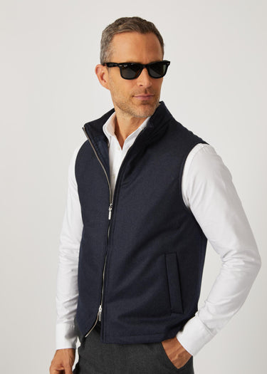 Appearance Flannel Blouson Vest er udført i en blød Tech-Flannel fra Italienske Vitale Barberis Canonico. Den særlige Tech-Flannel er lavet med den lækreste uldkvalitet i en Pure WV Super 120'S ekstra fin Merino uld. Det fine glatte (worsted) garn er spundet af kæmmet langfibret uld, som giver metervaren den super bløde overflade og sikrer samtidig lang holdbarhed. Vesten har en særlig membran på bagsiden af uldtekstilet som den både vind- og vandafvisende. Herved opnås det elegante udtryk i den lækre Super 120’S Flannel, kombineret med teknologien i membranen.