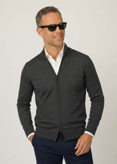 Fra Wallstreet til en afslappet søndagsbrunch, denne alsidige garderobe must-have passer til det hele. Vores Full Zip er lavet af fint strikket Ekstra Fin Merino uld af bedste kvalitet. Den lette og bløde uld gør, at den kan bruges hele dagen.