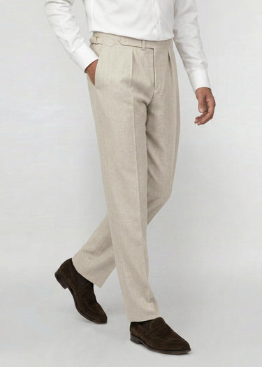 Hopsack Trousers, Pleated, Sand