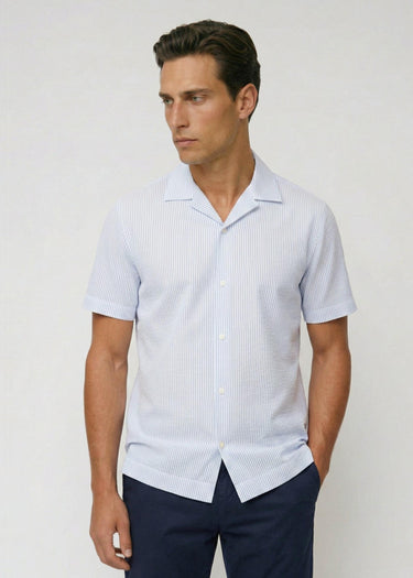 Seersucker Camp Collar Shirt, Brilliant Blue / White