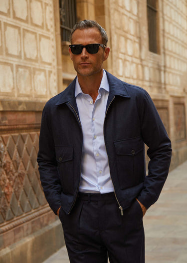 Appearance Flannel Blouson Jacket er udført i en blød Tech-Flannel fra Italienske Vitale Barberis Canonico. Den særlige Tech-Flannel i lavet med den lækreste uldkvalitet i en Pure WV Super 120'S ekstra fin Merino uld. Det fine glatte (worsted) garn er spundet af kæmmet langfibret uld, som giver metervaren den super bløde overflade og sikrer samtidig lang holdbarhed. Jakken har en særlig membran på bagsiden af uldtekstilet som den både vind- og vandafvisende. Herved opnås det elegante udtryk i den lækre Super 120’S Flannel, kombineret med teknologien i membranen.