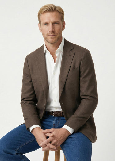 Vores Soft Hopsack Blazer i brun er som vores andre blazere i sortimentet, lavet ”unstructured”, hvor der ikke er lining i ryggen og ingen puder i skuldrene. Blazeren er udstyret med påsyede lommer, AMF-stikninger og knapper i horn. Alt dette giver jakken det helt særlige ”effortless” casual look, samt skaber en bedre åndbarhed af ryggen og fleksibilitet i jakken. Blazer jakken er omhyggeligt syet i Portugal, af dygtige og grundige hænder. Mange udfordrende processer skal til for at opnå denne umiddelbart ubesværet jakke.